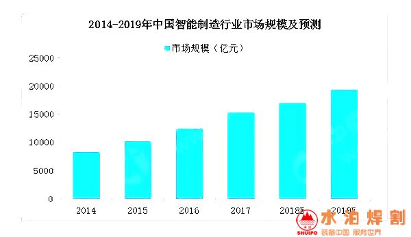 在國(guó)家政策推動(dòng),制造業(yè)技術(shù)轉(zhuǎn)型升級(jí)等背景下,中國(guó)智能制造產(chǎn)業(yè)發(fā)展迅速,對(duì)產(chǎn)業(yè)發(fā)展和分工格局帶來(lái)深刻影響。數(shù)據(jù)顯示,2017年中國(guó)智能制造行業(yè)市場(chǎng)規(guī)模為15150億元,增長(zhǎng)率為22.6%,伴隨著技術(shù)的逐漸完善,應(yīng)用產(chǎn)業(yè)的不斷拓展,市場(chǎng)規(guī)模將持續(xù)增長(zhǎng),預(yù)計(jì)2019年市場(chǎng)規(guī)模將超19000億元。